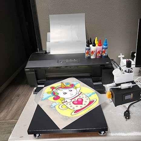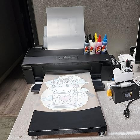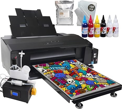 A3+ DTF T-Shirts L1800 Printer+Timed White Ink Cycle Machine for Fabrics, Leather, Toys, Swimwear, Handicrafts, Pillow, Other Textile.(DTF Printer + 6X 100ml Ink+100pcs PET Film+1BAG Powder), Black