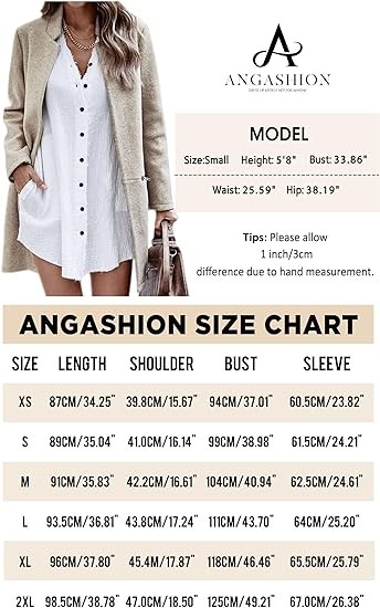 Angashion Women’s Coat, Long Sleeve Stand Collar Cardigan Mid-Long Open Front Outwear Overcoat with Zipper Pockets