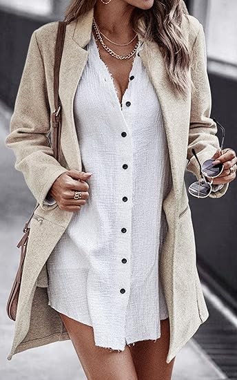 • Coat Design: Long sleeve, stand collar, open front, mid-long length, with zipper pockets, stylish and elegant, make you look slimmer, taller.