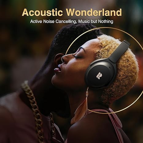 Bluetooth Headphones, Premium Active Noise Cancelling Wireless Headphones Over Ear, 50H Playtime, Hi-Res Audio, Deep Bass, Memory Foam Ear Cups for Travel, Home Office