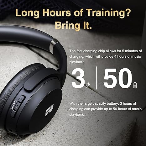 【Extended Playtime】Enjoy 50 hours of battery life on a single charge. A 10-minute quick charge can provide 3 hours, or plug in the included 3.5mm audio cable to listen even longer in wired mode.