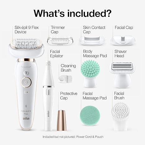 Braun Epilator Silk-épil 9 Flex 9-300 Beauty Set, Facial Hair Removal for Women, Hair Removal Device, Shaver & Trimmer, Cordless, Rechargeable, Wet & Dry, FaceSpa
