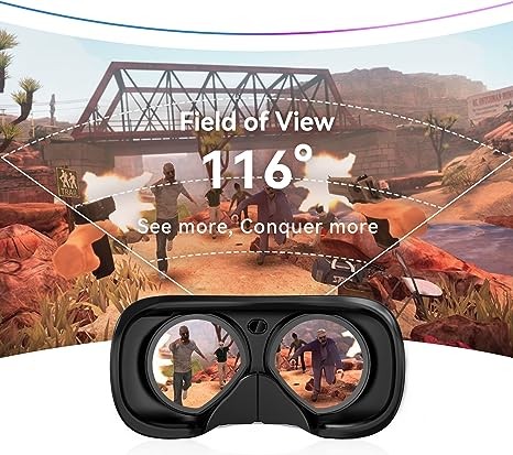 • Unlock Immersive Gaming Experience: Featuring a leading resolution of 3664 x 1920 pixels, DPVR E4 assures you brilliant clarity. With a wide 116° field of view (FOV), you will see more of your environment, and spot the target first. To give you a more seamless and fluid visual experience, DPVR E4 VR headset is designed 120Hz refresh rate so that you may react faster with lower latency in your game. High clarity, Wide FOV, and low latency, what required for an immersive gaming experience, DPVR E4 made efforts and fulfilled