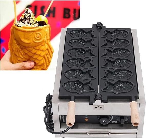 DYRABREST Taiyaki Fish Waffle Maker,Electric Commercial Fish Waffle Maker, 6Pcs Non-stick Stainless Steel Waffle Iron Baker Machine for Restaurant Cafe Snack Shop Food Stall