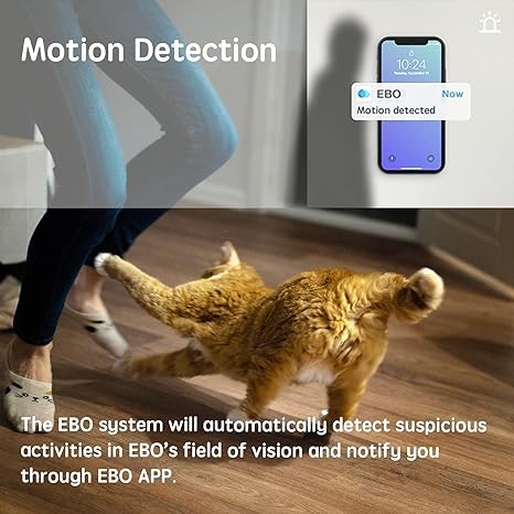 2 Way Talk & 1080P Night Vision: EBO SE provides you with a new way to connect, allowing you to talk to your family or pets all day, and open the EBO APP, you can see their every move.HD night vision and self-charging features enable 24-hour guarding and companionship.