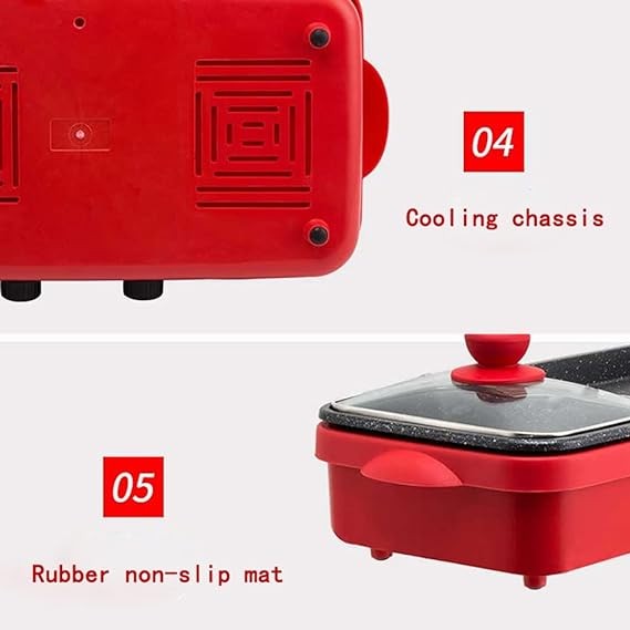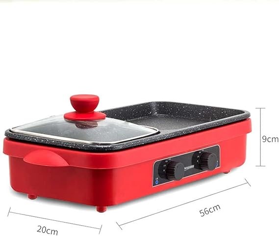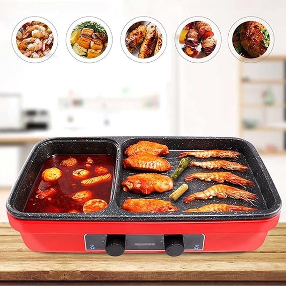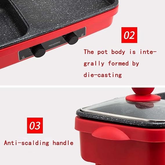• 2 in 1 Hot Pot & Grill: Our 2 in1 electric BBQ grill hot pot combines hotpot and grill for multipurpose use, allowing you to enjoy hotpot and barbecue at the same time. In addition, the hotpot with a divider can carry two tastes of food. It is ideal for heating and grilling soups, steaks, vegetables, and shellfish. Dual-purpose offers double fun.