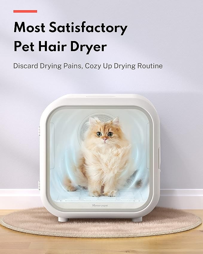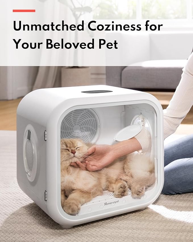 Homerunpet Drybo Plus Automatic Pet Dryer for Cats and Small Dogs - Ultra Quiet Dog Hair Dryer with Smart Temperature Control and 360 Drying