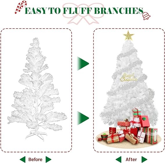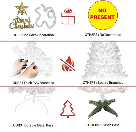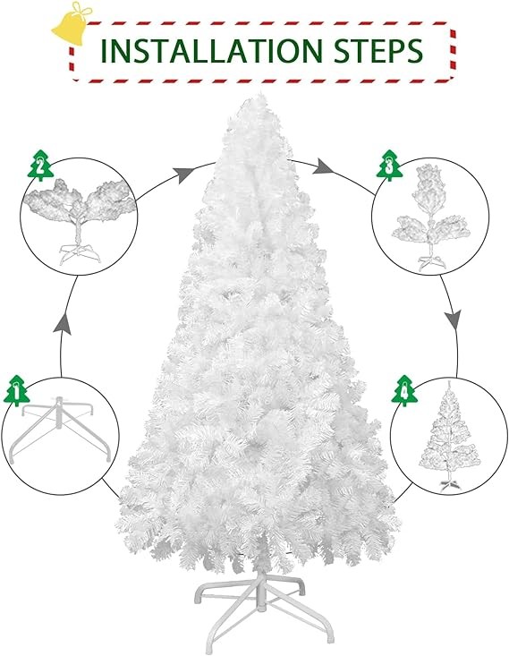 • 【Premium PVC Material】The high quality Christmas tree is made of environment-friendly and non-flammable PVC material that is harmless to make it the perfect replacement of the real tree. The sturdy metal stand also provides stability and prevents tilting.