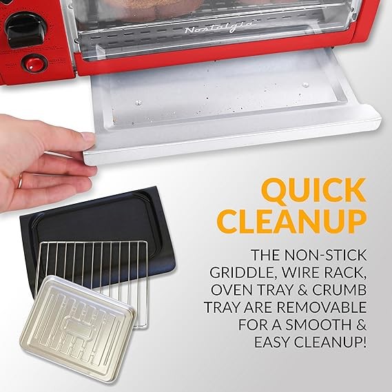 Nostalgia 3-in-1 Breakfast Station - Includes Coffee Maker, Non-Stick Griddle, and 4-Slice Toaster Oven - Versatile Breakfast Maker with Timer - Red