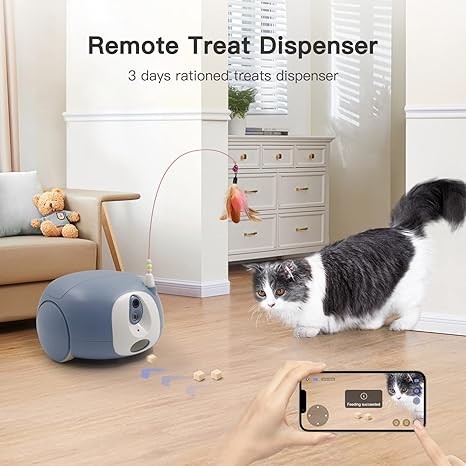 • [Remote Treat Dispenser] Fill the device with favorite snacks and control the app to feed up to 11 times ( You can dispense 2 treats 3 times a day, and the loaded snacks can last for 3 days)