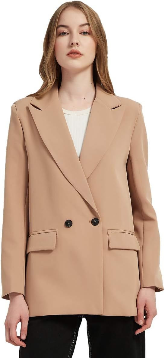 RZIV Women's Casual Long Sleeve Lapel Oversized Button Work Office Blazer Suit Jacket