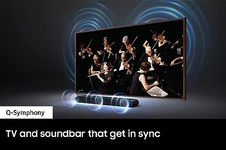 • Q-SYMPHONY: Perfectly synchronized, fully immersive audio floods your room all at once, using every speaker in compatible Samsung TV and soundbars*