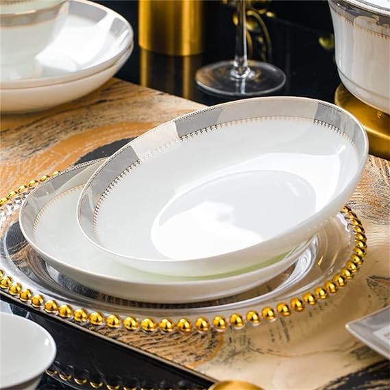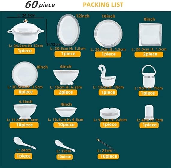 YFZM 60 Piece Europe Bone China Tableware Sets Sushi Dishes Food Bowl Spoon Ramen Plates Dinner Set Utensils for Kitchen Accessories